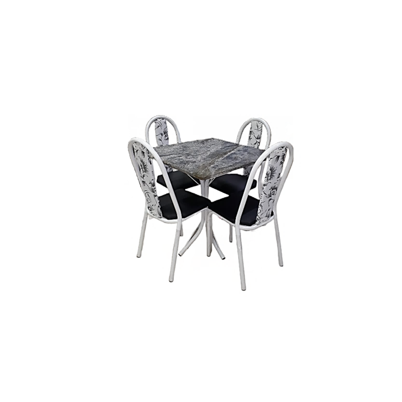 O tampo de granito oferece uma superfície robusta e fácil de limpar, além de um visual sofisticado que se destaca em qualquer ambiente. As cadeiras, com acabamento elegante, proporcionam conforto e são ideais para longos momentos de refeição e convivência. Este conjunto traz um toque de modernidade e requinte para a sua sala de jantar.